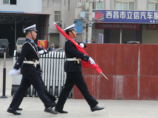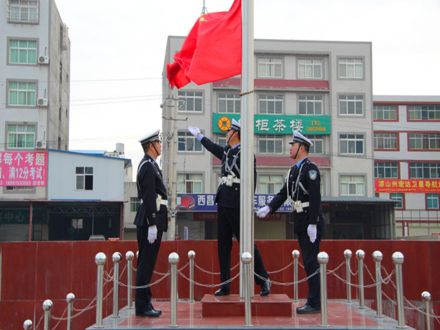 2017年1月3日9时,交警支队、禁毒局举行一月升旗仪式。交警支队、禁毒局全体民警、工勤人员和聘用人员参加升旗仪式。