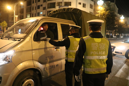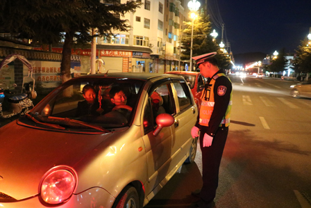 行动中,大队在县城城东南大道设锦屏酒店为临时检查点,对过往机动车辆严格盘查,切实做到发现一起,查处一起,保持严管态势,坚决遏制重特大道路交通事故的发生。做到严厉查处酒后驾驶、“三超一疲劳”、无证驾驶、毒驾、摩托车超员等严重交通违法行为,对城区餐饮、娱乐较为集中的交通路为酒驾整治重点区域、路段,严格查处了酒后驾驶机动车违法行为,努力做到对有酒后驾驶机动车嫌疑的一个也不漏过,一个也不放过。民警在对过往车辆进行检查的同时,对违法驾驶人动之以情、晓之以理批评教育,面对面向驾驶人、乘车人讲解酒驾行为的危害性,教育其自觉做到“开车不喝酒,酒后不开车”,从而提高道路交通安全意识和自我防护意识。